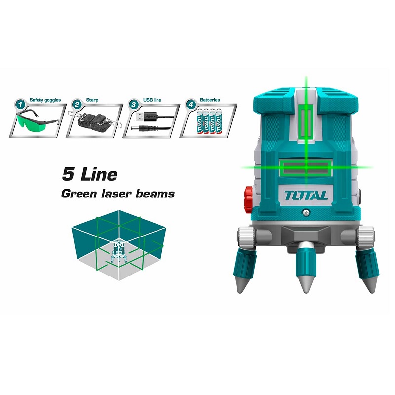 Máy cân mực 5 tia laser màu xanh Total TLL305205 chính hãng
